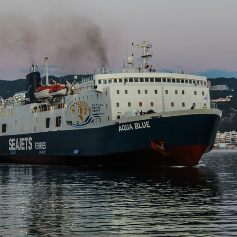 Λίγο πριν τις 06:30 κατέπλευσε για πρώτη φορά στην Καβάλα το Ε/Γ -Ο/Γ AQUA BLUE της SEAJETS FERRIES εταιρίας που είχε να μας επισκεφτεί από το 2015 μετά το Champion Jet 2 με την αποσυμφόρηση των προσφυγικών ροών .Το γιαπωνέζικο και στιβαρό ποστάλι γέμισε το λιμάνι με μια εξαιρετική αριστερόστροφη μανούβρα αρκετής διάρκειας λόγω του ότι το πλοίο είναι αρκετά βαρύ στις μανούβρες .